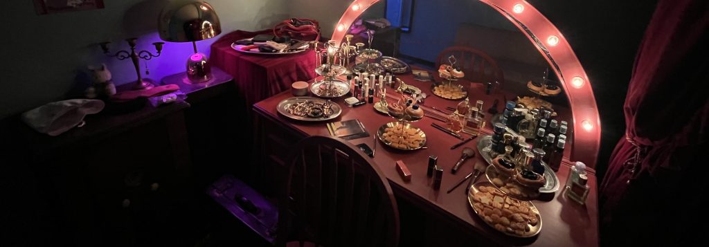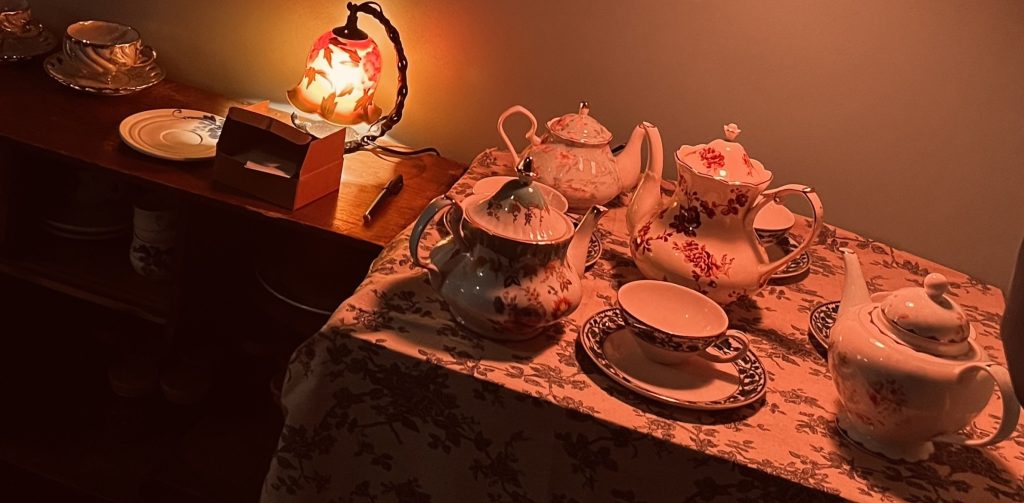 ということで、私たちは部屋にある花瓶にドライフラワーを生け、キャンドルを持ち、お茶会の舞台に向かいました。