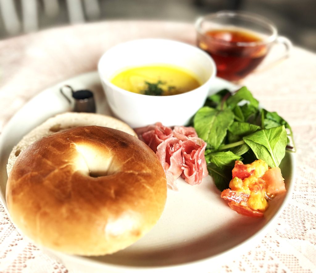 食べたかったベーグルセットを堪能しつつ、紅茶も飲みつつ。